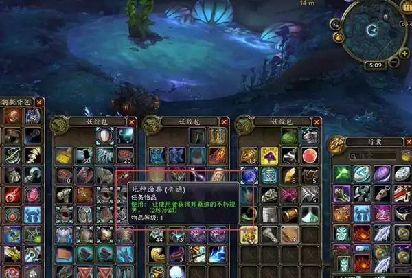 2、打开炽蓝仙野的地图,可以看到死神面具的提示,前往静谧之池获得死神面具,戴上面具就能看到平时看不见的东西。