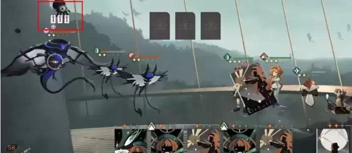 比如玩家这里看到怪物头上有三张攻击卡,此时立即使用十四行诗的缴械技能,就能让怪物2回合无法攻击。