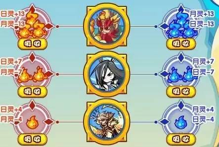 举个例子:例如我的日灵:73、月灵:27。以月灵这边为例:27(初始值)+13-4+7+7=50,正好左右平衡。(注:蓝色字体为点击右侧,红色字体点击左侧)