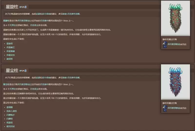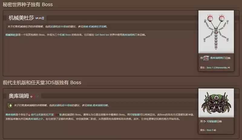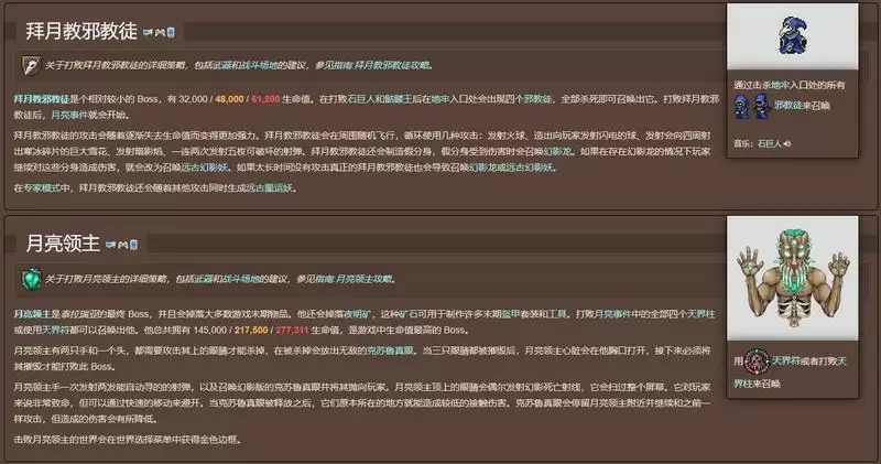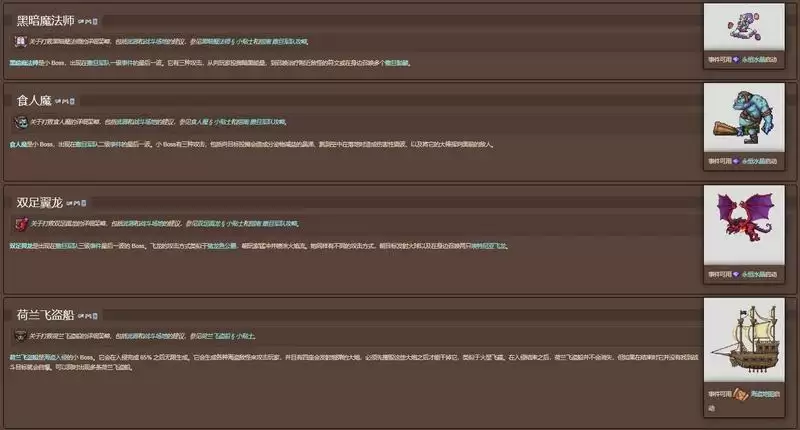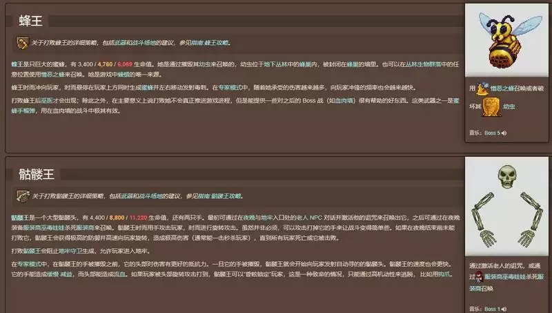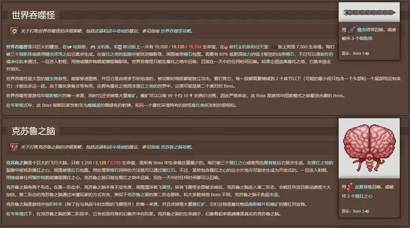 泰拉瑞亚游戏中有着超多的boss,接下来就为大家带来泰拉瑞亚boss大全图鉴一览,一起来看一看boss都有哪些内容吧,相信一定能让大家获得很好的了解,知道boss都有多少,让大家可以更好的挑战boss。