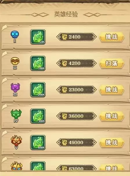 2:在【副本挑战】系统里,有独立的赚取英雄经验入口,玩家可以根据等级选择产出*高的入口挑战。而且每次战胜的结算奖励不一定相同,翻倍的可能性很高哦。