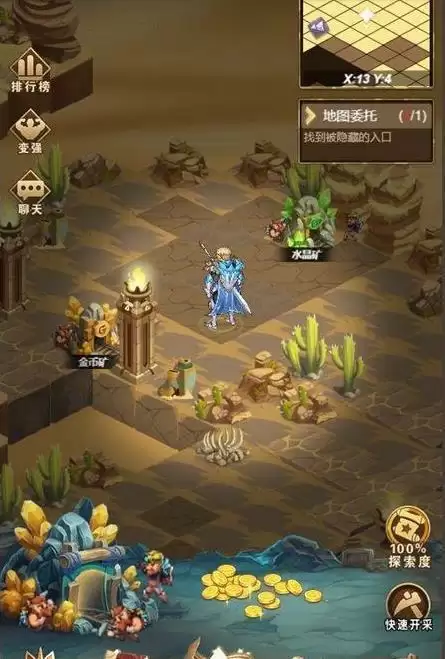 1:在【冒险系统】里,玩家挑战成功占领的经验矿点,会时刻进行资源生产,*长可积累8小时资源,当时间到达时会出现“满”字提醒。另外可以搭配每日免费的【开采功能】,也可以额外获得一定资源。