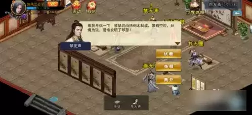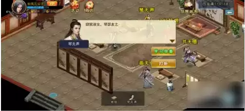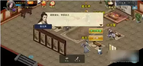 进入到四友斋内后接着跟NPC琴无声进行对话,之后选择【学习弹琴】选项。