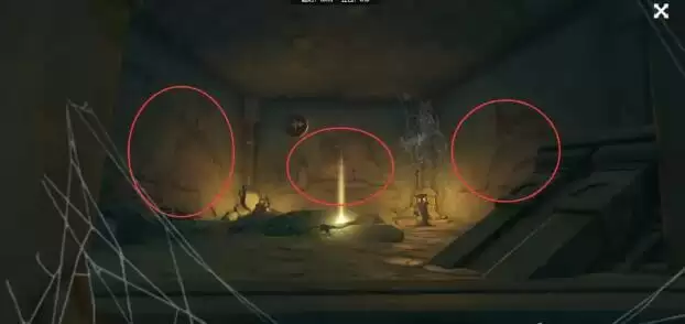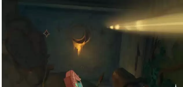 3、在下方墙壁有一个【雷鸟】图案,使用【羽毛】扫描图案就可以进入房间,一直往右走,来到最里面位置。