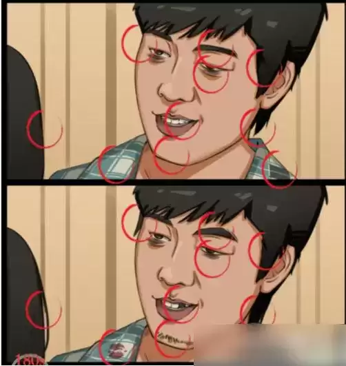 1、这一关是在图片中找出10处不同,这个男的看起来好猥琐哦
