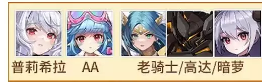 阵容二:普莉希拉、AA、老骑士/高达/暗萝;该阵容比较亏buff