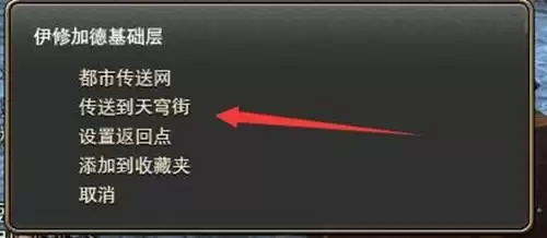 2、弹出选项,点击传送到天穹街。