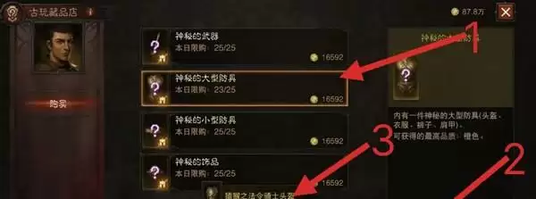 3、这里有许多神秘装备,用金币购买,然后开盲盒。