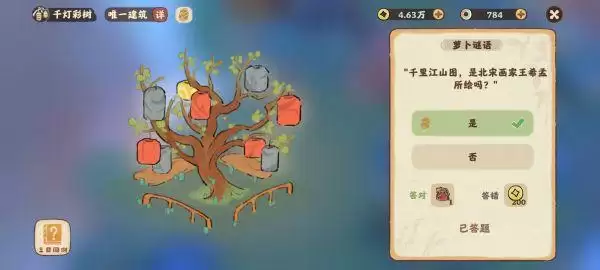 桃源深处有人家萝卜谜语答案是什么?桃源深处有人家萝卜谜语有不少的问题,其中一道问题是:千里江山图是北宋画家王希孟所绘吗?不少玩家不清楚这道问题的正确答案,小编带来了具体的答案介绍,一起了解下吧。
