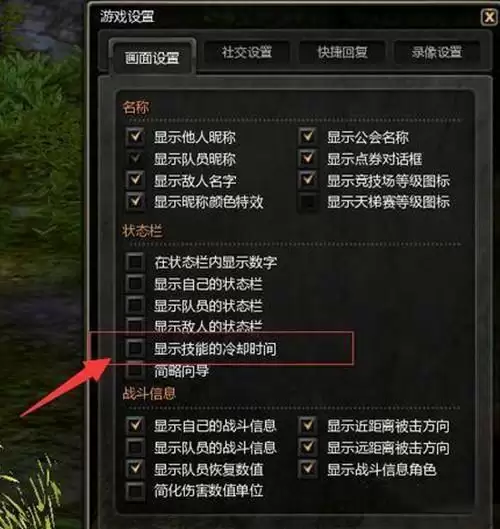 3、在状态栏中找到【显示技能的冷却时间】,打钩就好了。