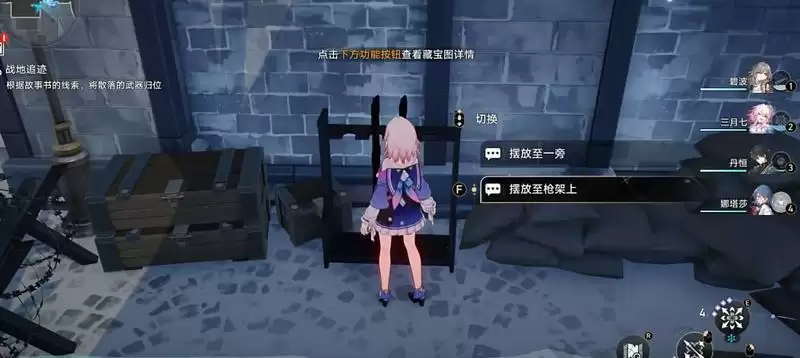 3、来到武器架的地方,将地上的枪摆放到墙架上即可完成第一个任务。