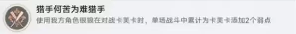 使用我方角色银狼在对战卡芙卡时,单场战斗中累计为卡芙卡添加2个弱点。