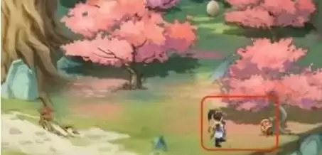 2、接着来到神木林右上角大树旁,在一个粉色的树下面可以看到一个宝箱;