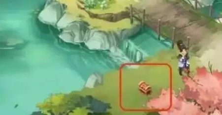 3、最后来到神木林左下角桥边可以看到一个宝箱。