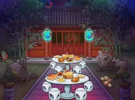 2、院中:依次点击墓碑、全鸡宴、纸钱、蓝色灯笼、奇怪的影子、人影,找齐后进入屋内