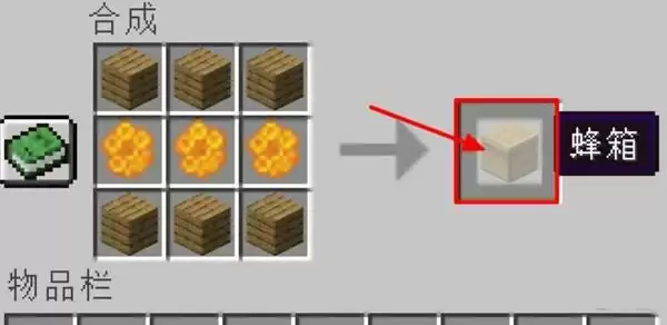 3、把蜜脾放在工作台里,其他格子放上木板,这样就可以合成蜂箱了。