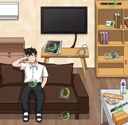 2.点击打开书柜发现尺子,拖动剪刀到矿泉水是透明矿泉水。