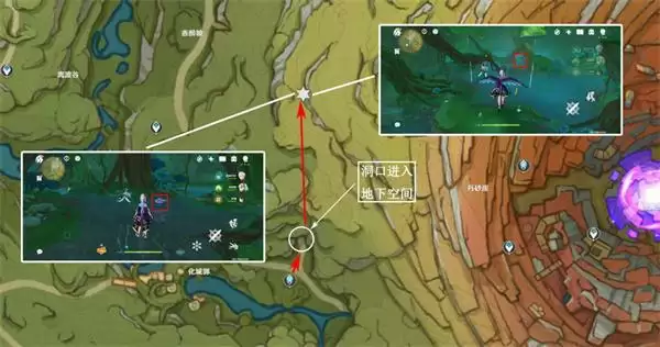 4、由下图传送点进入地下空间,右下两个进去就能看到;