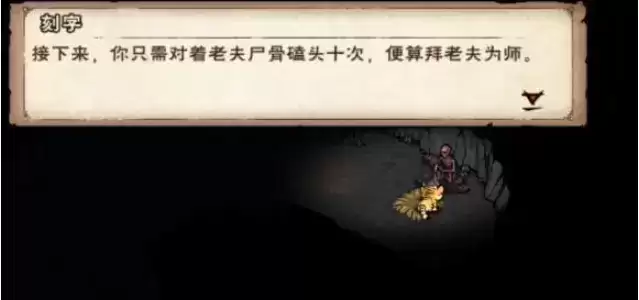 5、在机关处放入石块开启机关,点亮所有烛台开启石门,进入洞中后石门关闭,在白骨处发现密卷,天池老怪故意留下线索拉人陪葬。