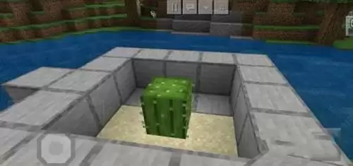 1、用方块围绕一个坑起来,把仙人掌放进去。