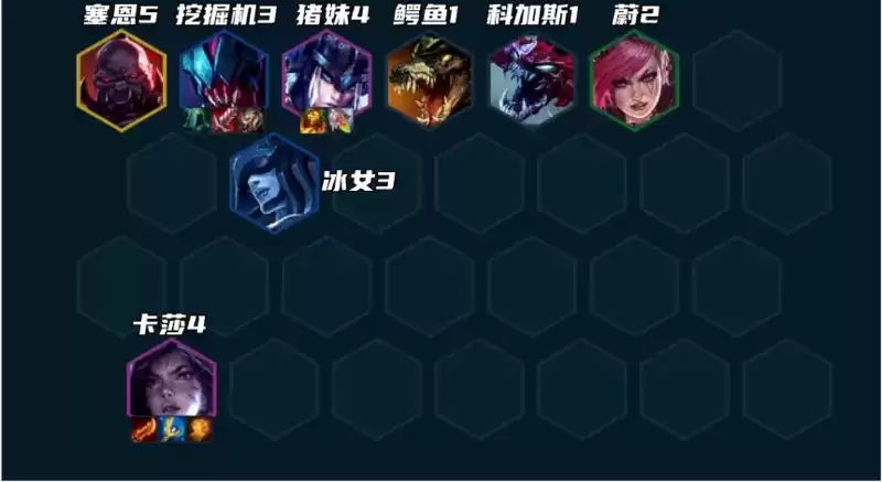 这时候提莫、劫等阵容基本成型。我们必须要在7人口就开始D牌,否则根本扛不过去。推荐7人口直接把3星雷克塞、2星卡莎、2星猪妹D出来,上述条件都满足的前提下,可以上8找两星塞恩。有斗士转的话,其他两星五费也可以给斗士转。
