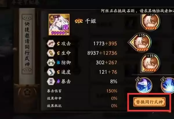 2、在这里可以快捷邀请同行式神,点击你要更换的那位式神。