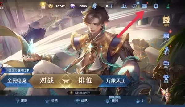 1、来到游戏大厅,点击右上角的【邮箱】。