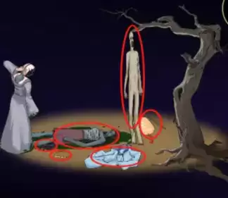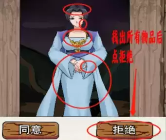 2、撞见画皮现场,点击图中标注物品,进入下一场景