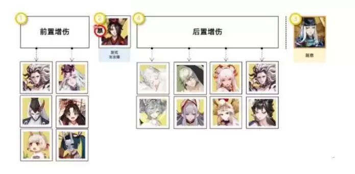 (2)替换:太多可选择,总体可分为前置增伤和后置增伤,如图任选搭配,注意工具人鬼吞+绘卷需绑定一起使用,薰需前置超黑锁普攻(图上未列)等特殊情况。
