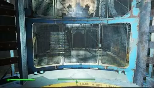 2、进入左边的门卫亭里,点击按钮就会发动警报,我们站在电梯上去,等动画过了后就来到111避难所了。