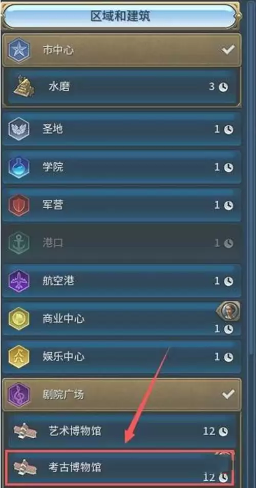 4、点击生产菜单,建造考古博物馆。