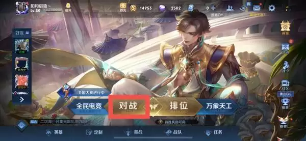 1、来到游戏大厅,点击对战。