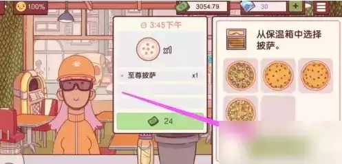 等待快递员进店,和他对话,然后选择披萨,点击供应订单。