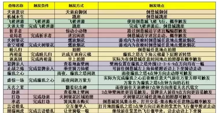 1.梦幻新诛仙倒悬城奇缘24个,部分需要特定地点的奇缘在本文附上触发地点。