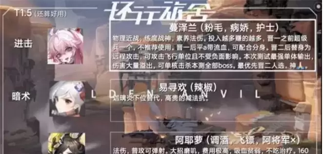 4.环行旅舍T1.5角色强度:蔓泽兰、易寻欢、阿耶萝、山栀、无问、杯瓷、怯鳞