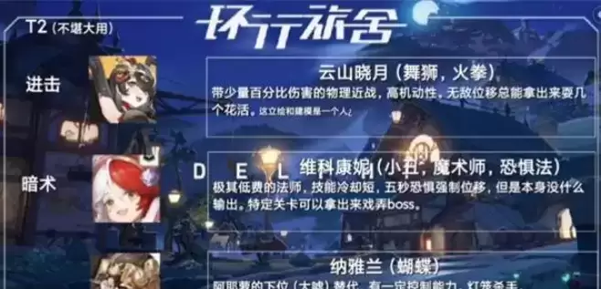 5.环行旅舍T2角色强度:云山晓月、维科康妮、纳雅兰、抚雪、云桃、残噱