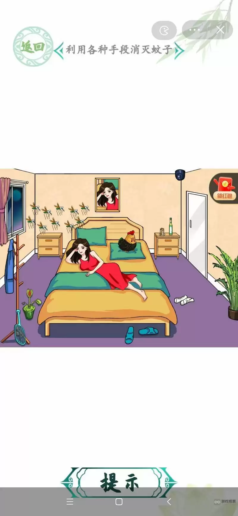5、拖动地上的拖鞋到蚊子身上