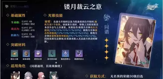 4.崩坏星穹铁道驭空光锥推荐四:镂月裁云之意