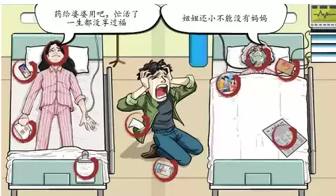 1、先点信息,老婆(脸),手机(女儿),新药报告,病历(癌症晚期);