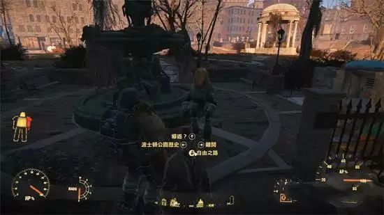 1、前往公园,以雕像为起点出发。