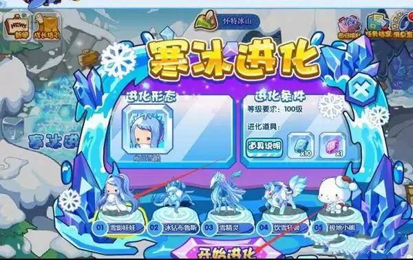 5、点击寒冰进化,选择雪影娃娃,这样就可以超进化了。