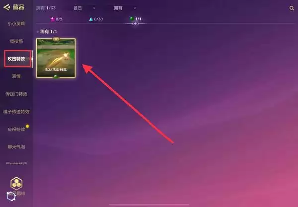 2、再点击左侧的攻击特效,选中你想要使用的特效。