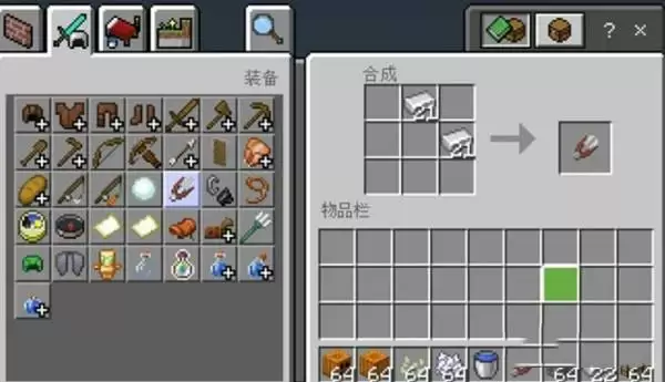 3、把两块铁块放到工作台里,合成一把剪刀。