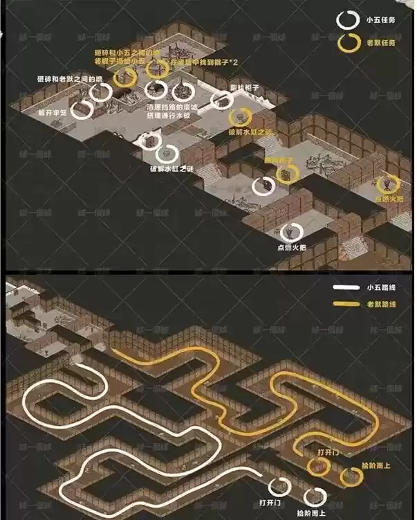 3.图中为小五和老默依次推杆的顺序和位置,推完往前走就行了,下面的任务有的自己点不动是因为需要对方操作。