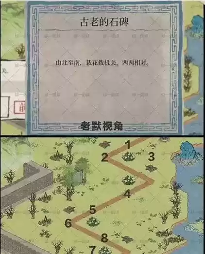 10.根据古老的碑文由北至南、栽花拨机关、两两相对破解机关:老默视角