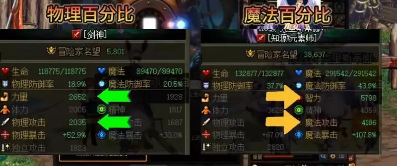 百分比职业分物理百分比和魔法百分比,增益分别靠力量、物攻和智力、魔鬼提升。