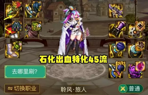 顶级打造玩家专属,旅人职业的专属出装,需要2件特化45级技能的自定义史诗支撑,如果背包里有这两件装备,可以立即加入。没有的玩家也可以先走石化出血流,再慢慢刷这2件自定义,然后转型,武器贴膜为“12号、42号、龙焰27号”。