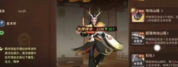 最后是被动技能石化,石化技能是通过地动山摇技能来触发的,该技能命中敌人之后有29%的几率会让敌人进入到石化,持续时间为三个回合。这个技能的控制就比较恐怖了,三个回合足够做很多的事情了。而且初始的控制几率也不低,后续升级还可以带来提升。