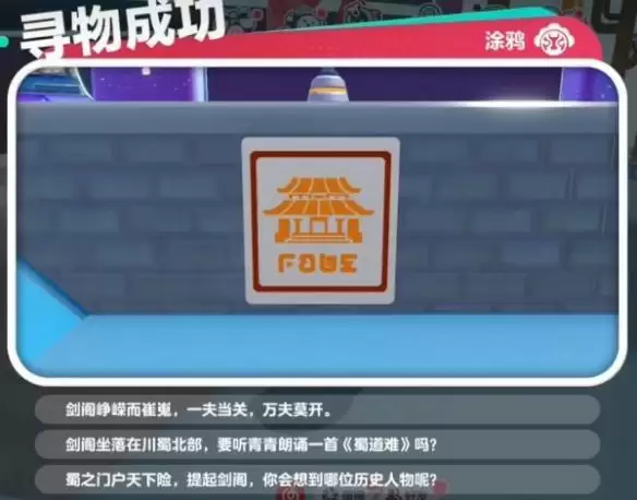 此处涂鸦是在墙壁上,来到图中此处点击查看物品即可完成收集。