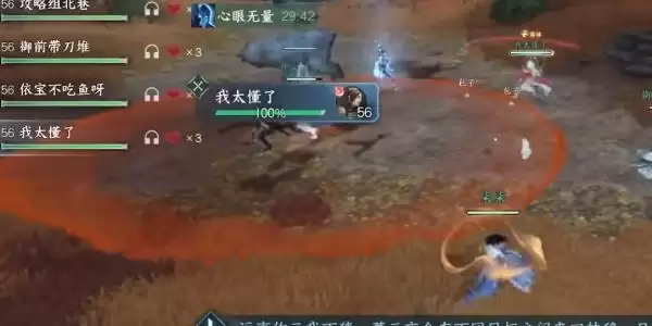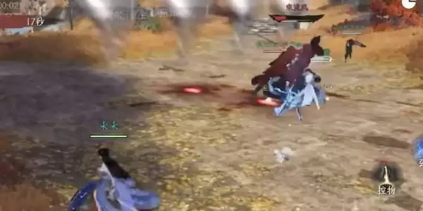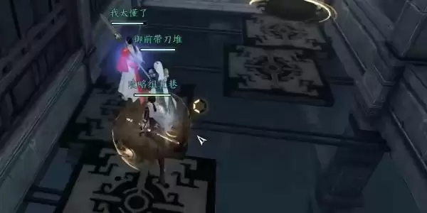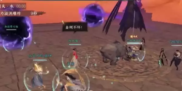 5、最后一个BOOS-孟子渊,第一个注意的是我们需要集火打紫色的旋涡,第二需要注意我们需要分散的走位(我们可以躲到剑的后面来躲避伤害),点平台塌陷之后我们需要躲避BOOS的平A即可;